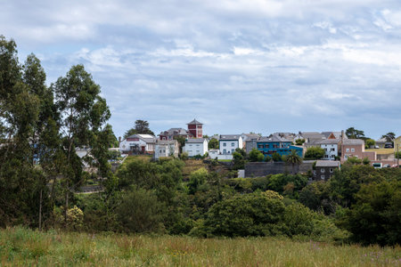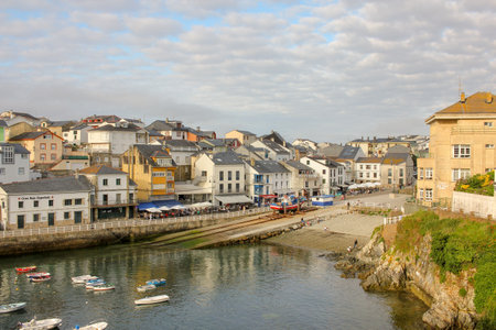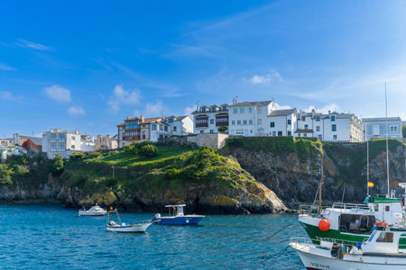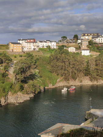 Panoramic view of the picturesque coastal village of Puerto de Vega in Navia, Asturias, Spain. Concept of tourism, travel and holidays.