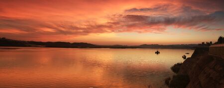 Fishing boats in a lake in Tuscany, Italy.