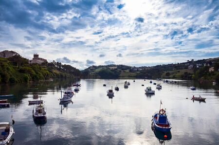 Landscape view of the harbor village of Puerto de Vega in Navia, Asturias, Spain. Concept of tourism, travel and holidays.