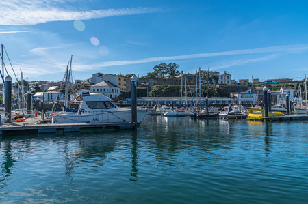 RIBADEO, SPAIN - AUGUST 30, 2022: View of the port of Ribadeo, on the banks of the Eo estuary, Galicia, northern Spain