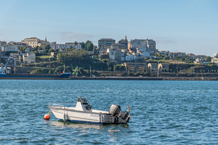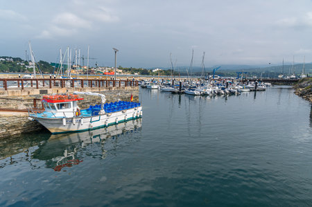 RIBADEO, SPAIN - SEPTEMBER 3, 2022: View of the port of Ribadeo, on the banks of the Eo estuary, Galicia, northern Spain