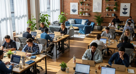 Successful Co-Working Space: Multigenerational Team of Diverse Entrepreneurs Collaborating on Profitable Projects in a Creative Workspace