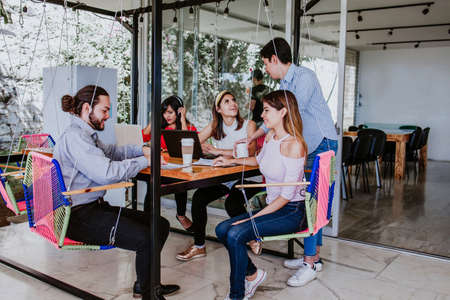 Latin students group or teamwork studying with computer in university in Mexico, Mexican People