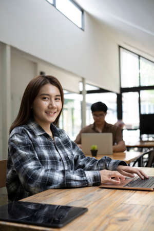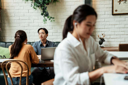Young people in co-working creative space - Youth millennial generation and business technology concept
