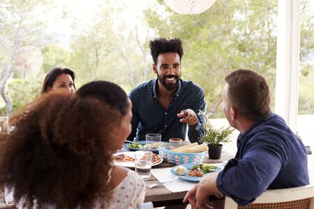 Friends Enjoying Outdoor Meal On Terrace Together