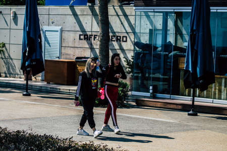 Limassol Cyprus March 16, 2020 View of an unidentified people without a face mask to protect themselves from the coronavirus walking in the street of Limassol in the afternoon