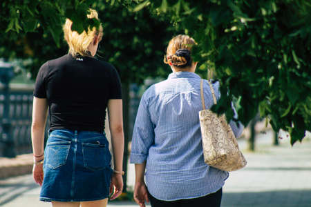 Budapest Hungary july 16, 2020 View of unidentified pedestrians walking in the historical streets of Budapest, the capital and the most populous city of Hungary