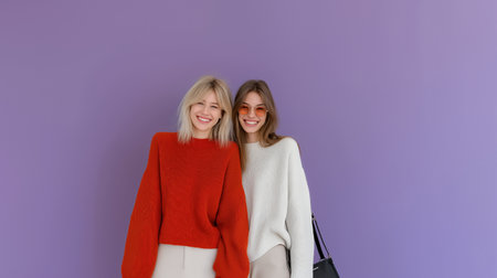 Young urban people wearing sunglasses, warm clothes and wool cap posing against a concrete wall in the street