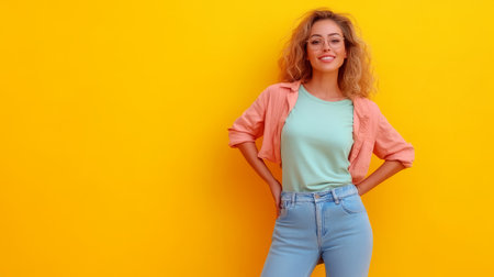 Cheerful young woman in a yellow tank top