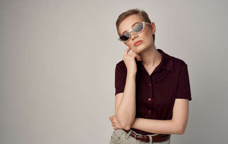 Pretty woman short haired glasses fashion elegant style shirt