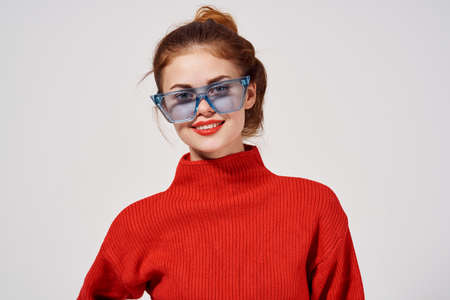 attractive woman Red lips attractive look isolated background