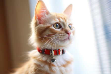 a kitten wearing a new collar bell, created with generative ai