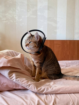 Cat with collar, cat after surgery, pain in cats, painful pets, Collar Cone Translucent Recovery Plastic Protective Collar Anti-Bite Lick Wound Healing Safe Comfort Protection Cat Comfy Cone Neck Collar Cover