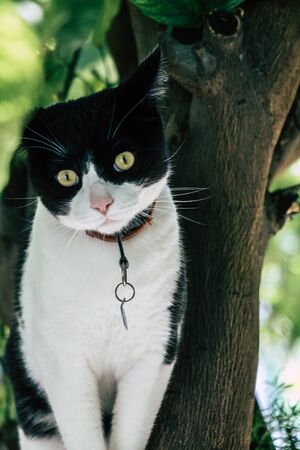 Limassol Cyprus May 01, 2020 View of domestic cat living in the streets of Limassol in Cyprus island