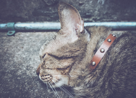 Close up and selective focus, Sleepy cat on a floor for pets concept image