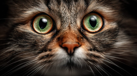 Majestic Brown Cat with Striking Amber Eyes and Long Graceful Whiskers Captured in Stunning Portrait