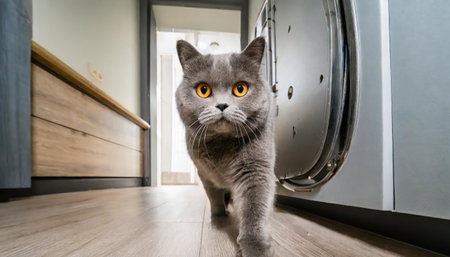 Efficient toilet maintenance in a sunlit home with a cat nearby Generative AI
