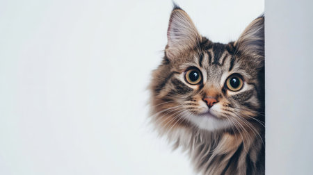 A close-up portrait of a young Siberian cat with beautiful fur and expressive eyes. This adorable feline exudes charm and curiosity, adding a warm touch to any pet-themed collection.