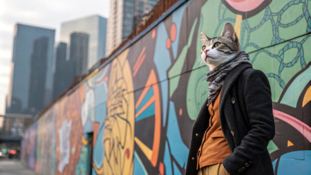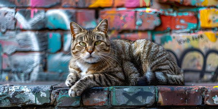 Urban Cat: A Feline with Street Art Swagger. Concept Street Photography, Graffiti Art, Edgy Style, Feline Pose, Urban Landscape