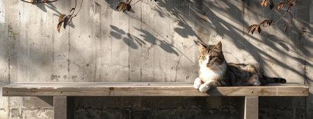 a cat perched upon a bench, basking in the sunlight with an air of serene contentment