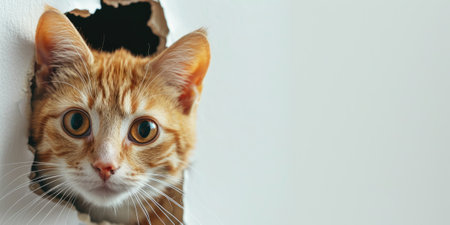 Close up view picture of the hollow white hole on the the wall that show the cat stay inside the wall that has been made from some material yet still can be break to look through other side. AIGX03.