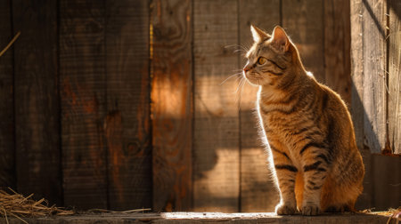 Orange tabby cat sitting in a sunbeam, looking curious and content