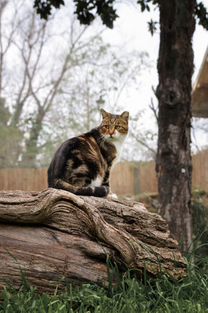 A cat sitting on a log, AI