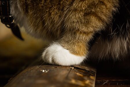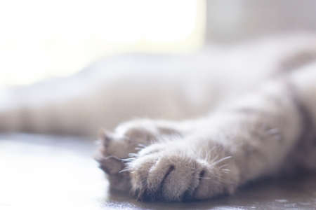 Shallow depth of field (selective focus) and macro image with the paw of a female shorthair european cat.