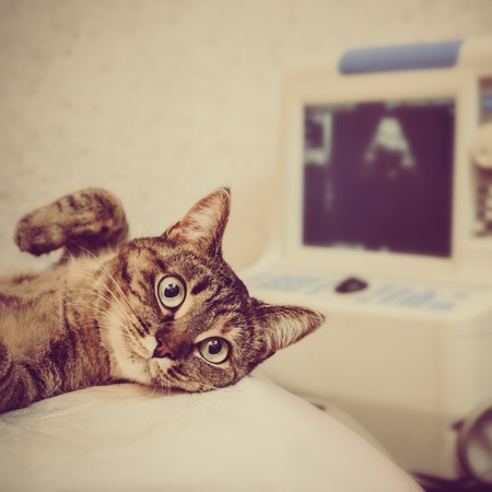 ultrasound diagnosis of a cat, in a veterinary clinic