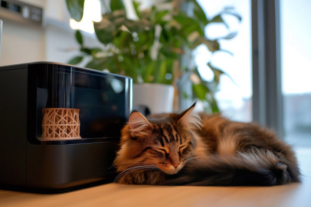 paralyzed cat with a robotic leg lying on medical sofa, generative ai