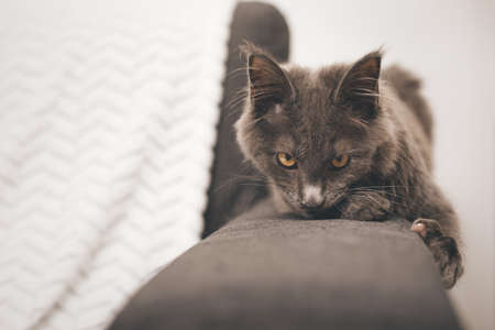 Gray cat on the couch at home