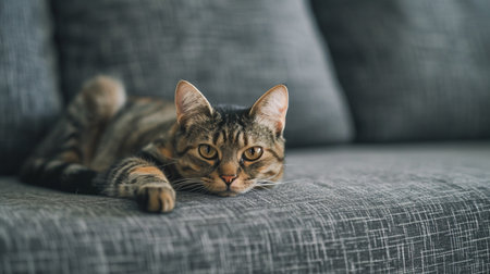 Tabby cat resting on the sofa