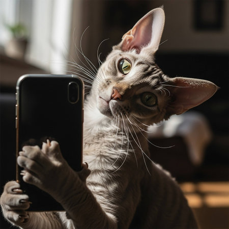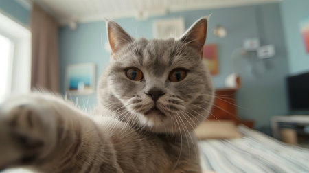 British Shorthair Cat Playing at Home in Full Body Selfie Angle Realistic Photography