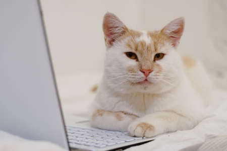 Cat funny animal or pet inside house or home. best human friend. Closeup Portrait.