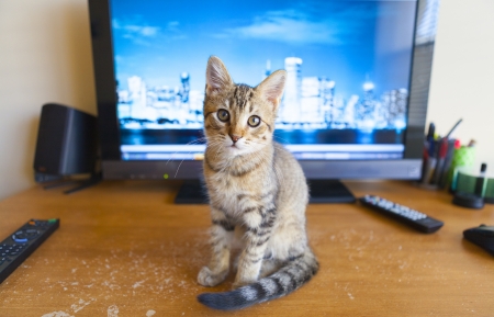 Cute cats are looking daytime in the house using wallpaper or background. for animal