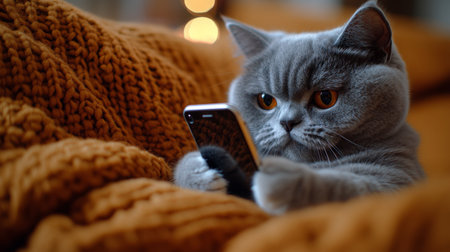 A person photographing her cat with a cell phone. Woman taking a photo with the camera of a smartphone.