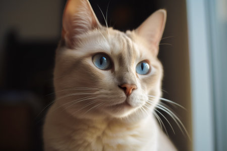 Siamese cat with blue eyes looking at camera. Close-up. Generative AI.