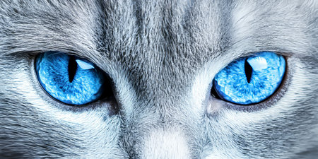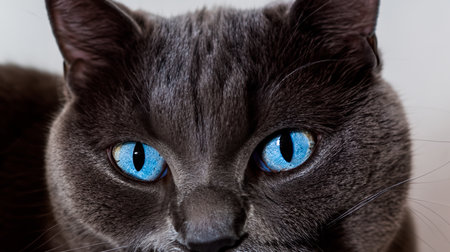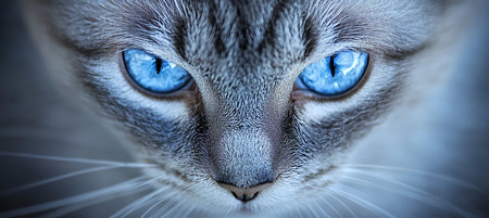 Majestic Grey Cat with Intense Gaze and Piercing Blue Eyes Captured in Stunning Close Up Portrait