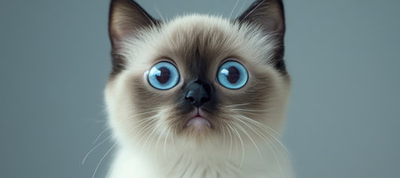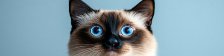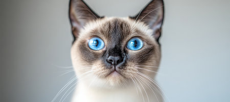 Stunning Portrait of a Siamese Cat with Striking Blue Eyes Against a Soft Light Grey Background