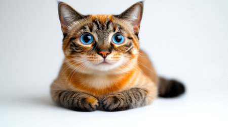 Close-Up Portrait of a Charming Himalayan Cat with Captivating Blue Eyes on a White Background