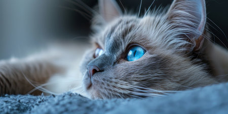 Stunning Ragdoll Cat with Intense Blue Eyes and Soft Fluffy Fur, Captivating Feline Portrait