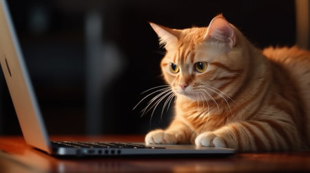 Technologically Enhanced Cat with Glowing Network Connections, Depicting Advanced AI Integration AI