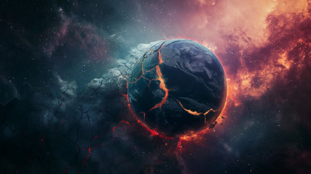AI Generated. Vibrant Cosmic Scene Featuring Planet on Edge of Destruction with Nebula and Dramatic Lighting Effects