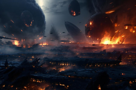 Asteroid impact, end of world, judgment day, Group of burning exploding. Generative Ai