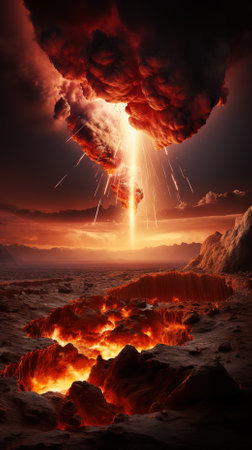 Volcanic explosion that creates a huge cloud of ash and smoke. generative ai
