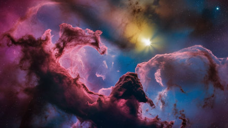 Vibrant cosmic clouds illuminated by stars in a stunning nebula revealing intricate details and colors in the vastness of space