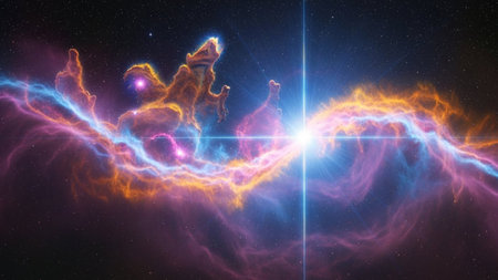 Vibrant cosmic nebula with colorful gas and dust in deep space.