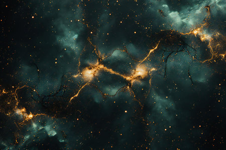 Abstract cosmic nebula with swirling clouds of gas and dust.