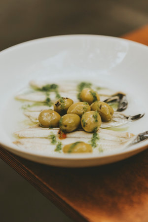 Olive tapas in a white plate