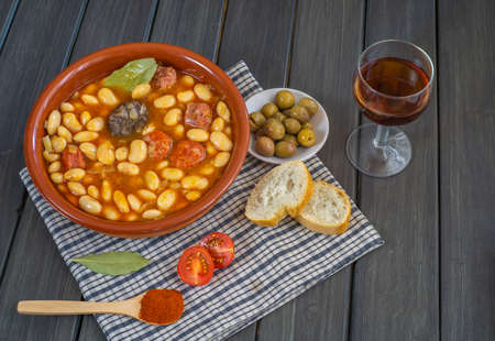 beans with chorizo and blood sausage typical dish from the north of spain